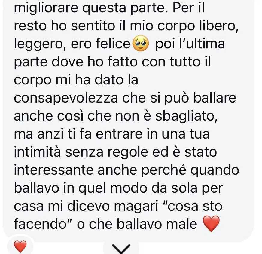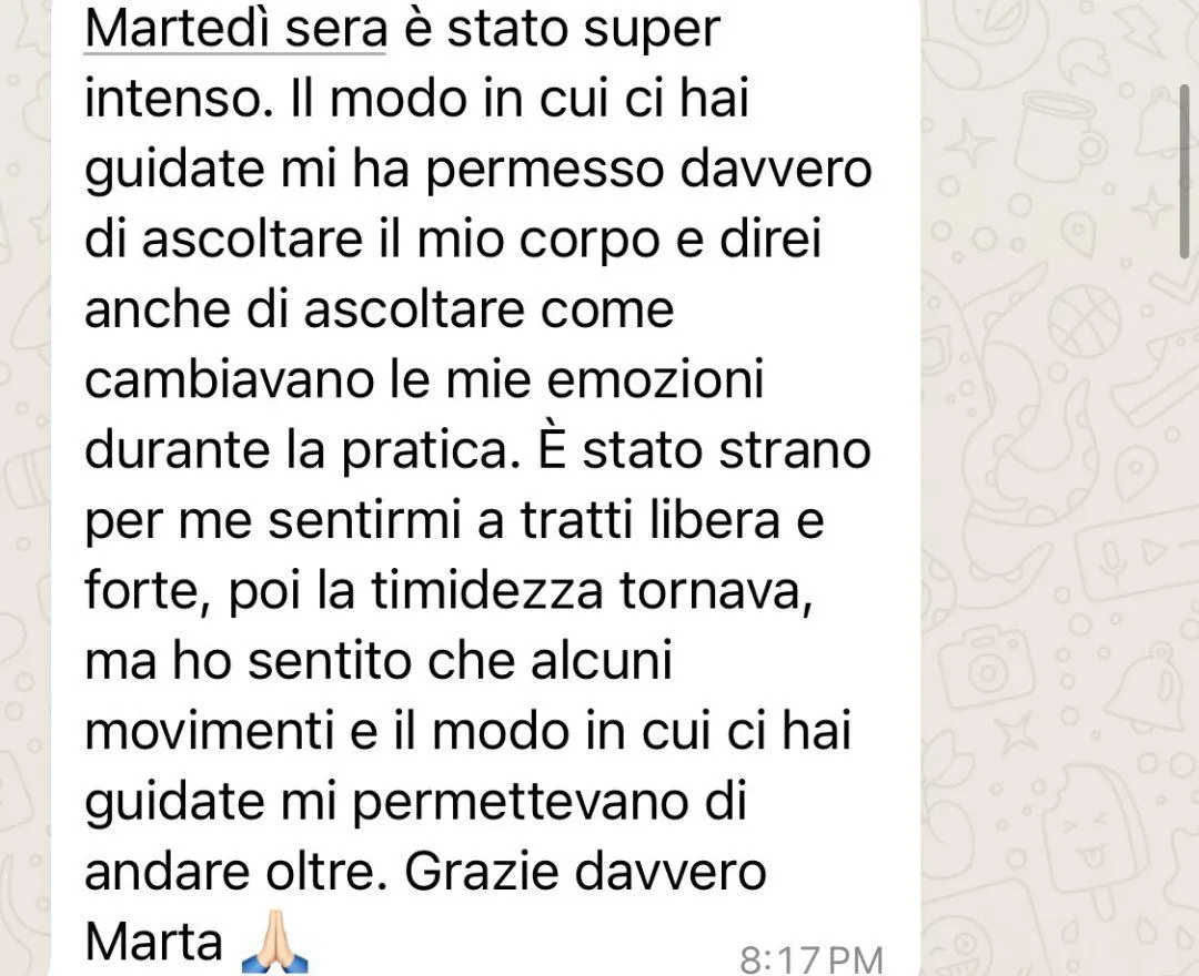 Assolutamente! Non è necessario avere esperienza con la danza o con la pratica somatica. Questo percorso è pensato per chiunque desideri ritornare alla saggezza del corpo, indipendentemente dalla propria esperienza precedente. Le pratiche sono gentili, accessibili e pensate per ogni corpo.